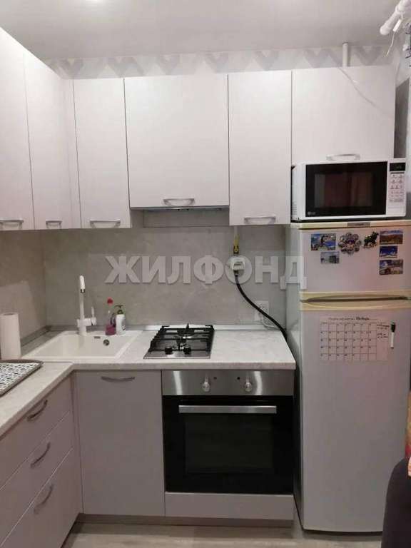 В квартире выполнен современный ремонт . Установлен кухонный гарнитур , с современной бытовой техникой .