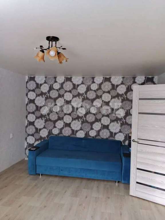 В комнате вместительный шкаф-купе и диван кровать .