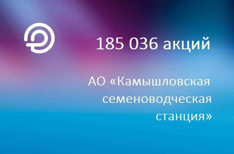Предлагаем 100 % пакет акций АО «Камышловская семеноводческая станция». Акций находится в собственности Российской Федерации. Основание проведения аукциона распоряжение Правительства Российской Федерации от 31 мая 2021 г. № 1414-р, приказ АО «Российский аукционный дом» от 06 декабря 2021 г. № П-0243/021.